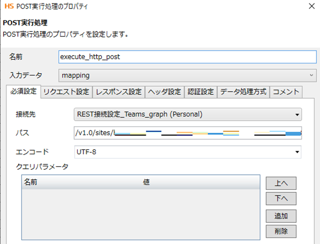 ※site-id、list-idは連携対象のTeamsのサイトIDとリストIDを設定してください。