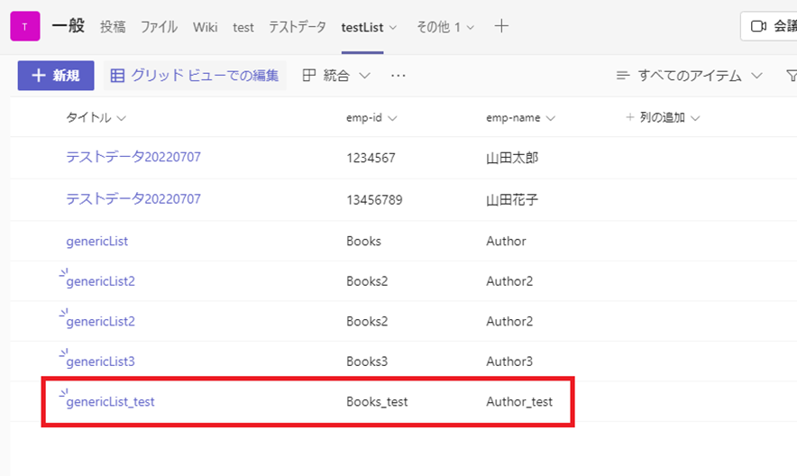スクリプトを実行して、TeamsのLists機能にマッピングした内容が追加されることを確認してください。