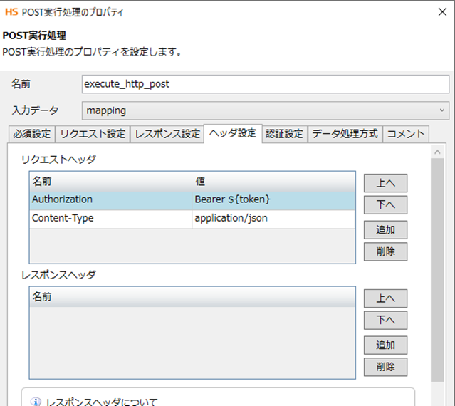 値: Bearer ${token} ※スクリプト変数「token」の値がここに代入されます。