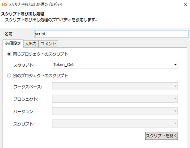 ここでは同じプロジェクト内の「Token_Get」を選択しています。