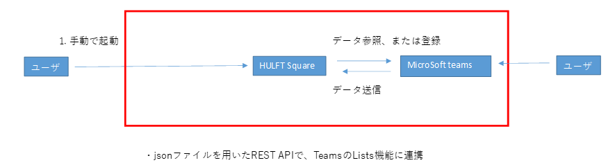 TeamsのLists機能に対して、任意のJSONデータを追加していく処理をHULFT Squareで構築します。