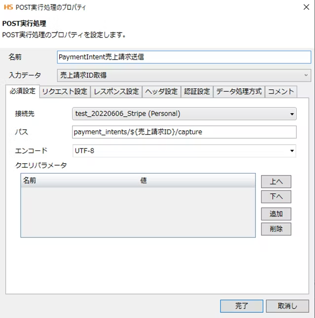 また、設定のパスで利用している${売上請求ID}は、手順①のレスポンスから取得したIDを設定します。