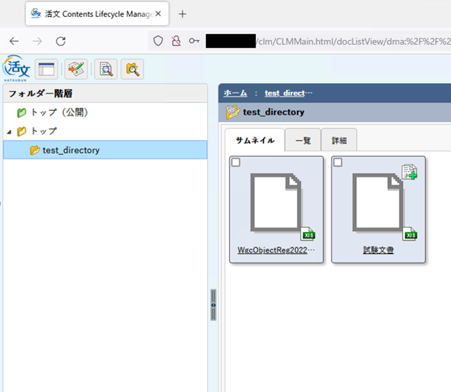 今回は活文の下記「test_directory」に新しいファイル(新規書類という想定)「test01.csv」「test02.csv」「test03.csv」をDataSpiderから自動登録していきます。
