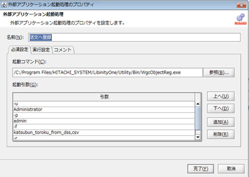 ② DataSpiderの「外部アプリケーション起動処理」機能で活文の「一括登録コマンド」を実行する