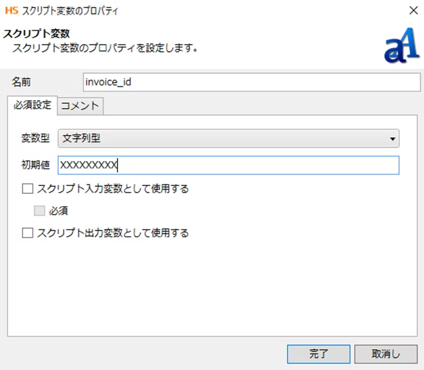 事前に作成していたスクリプト変数「invoice_id」の値がパスとして入力されます。