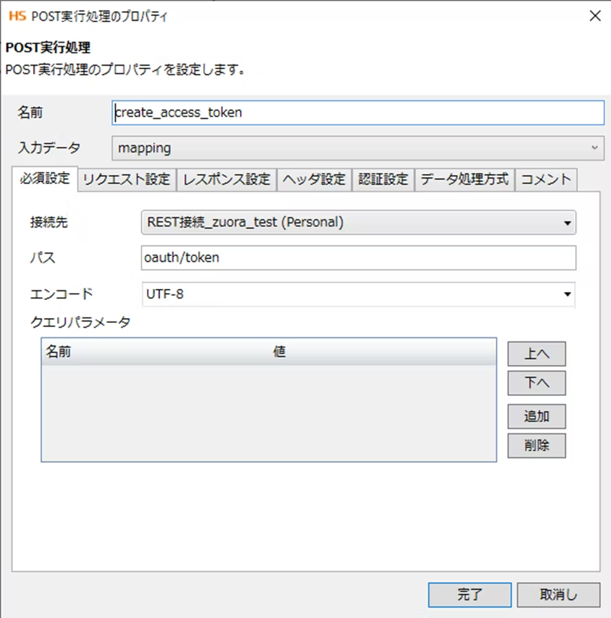 HULFT Squareは標準的なOAuth認証に対応していますが、ZuoraのOAuth認証に成功するためには、スクリプト内でアクセストークンを取得して適用する必要があります。