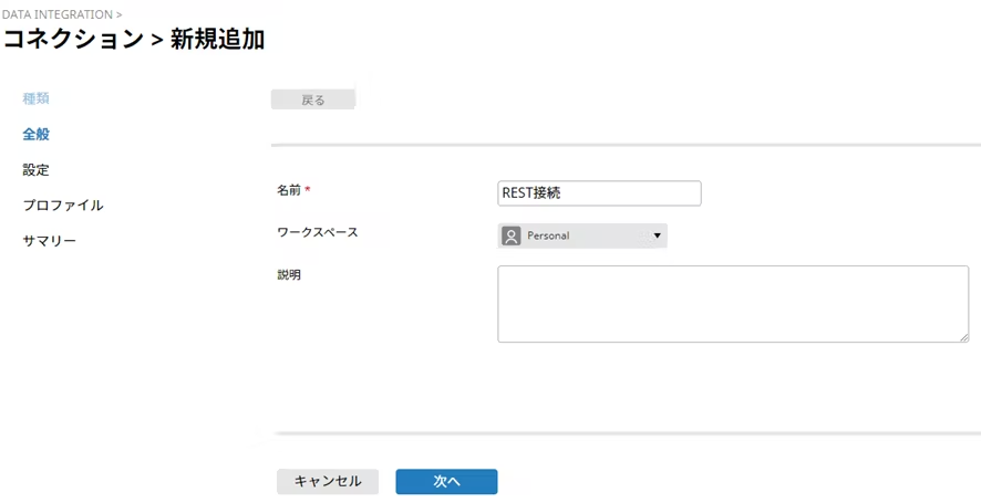 名前:任意。今回は「REST接続_zuora_test」と入力しました。
