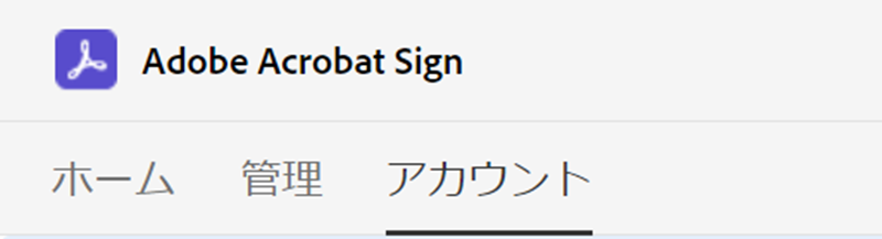 ログインするとホーム画面が開かれます。上部メニューから[アカウント]をクリックし、左メニューの[Acrobat Sign API]→[APIアプリケーション]をクリックします。