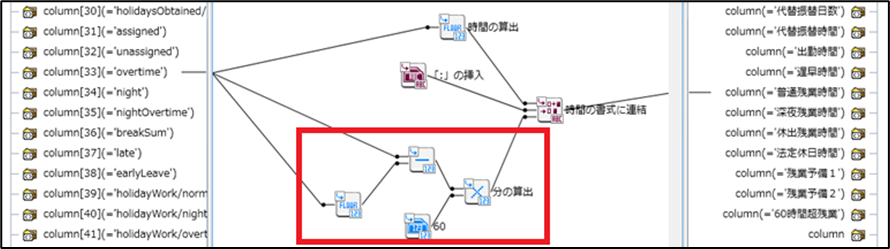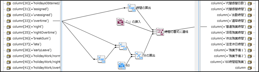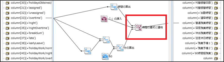 「overtime」の「5.25」を給与奉行に取り込み可能な「5:15」に変換してみましょう。