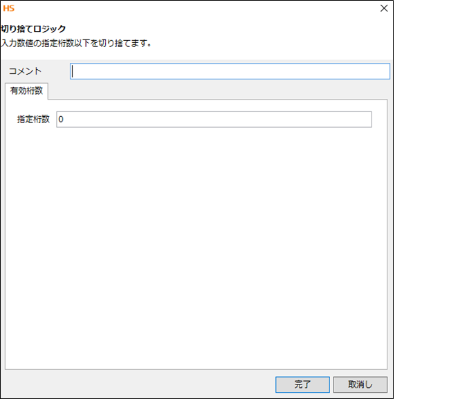 指定桁数:切り捨てる小数点以下の桁数を記載します。「5.25」から「5」だけを取得したいので「0」を入力します。