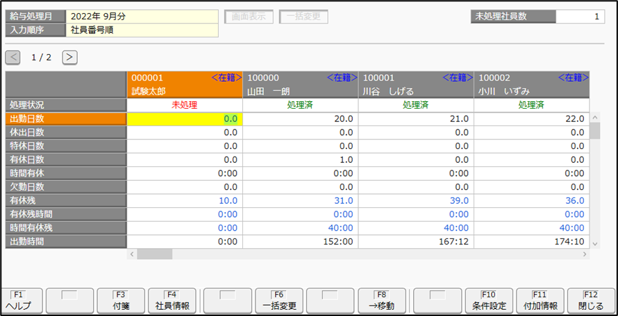 - 【参考】給与奉行クラウドで勤怠情報を手作業で入力する画面