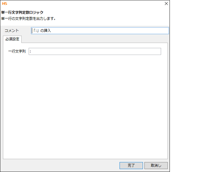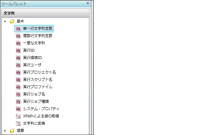 - mappingのツールパレット>文字列>基本>単一行文字列定数