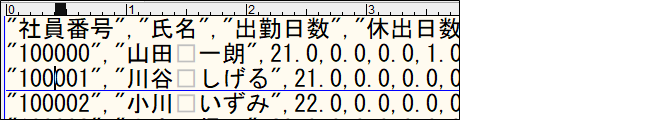 勤怠システムからは下記のように出力されるとします。下記の例では、1時間単位の数字で出てきている形です。