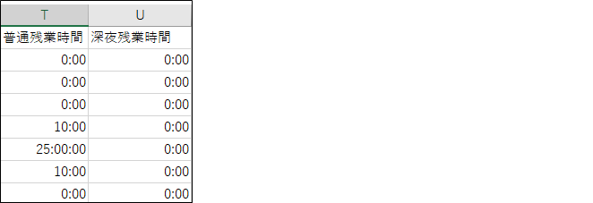 以上で、日時の変換(時間算出)も完了です。「普通残業時間」に下記のような値が出力されるようになるはずです。