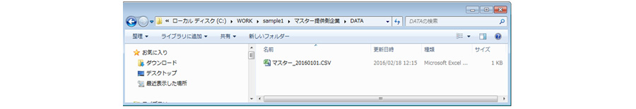 (項4.1)準備においてC:\WORK\sample1\マスター提供側企業\DATA\に”マスター_20160101.CSV”というファイルがありますのでメモ帳等のエディタで確認して下さい。