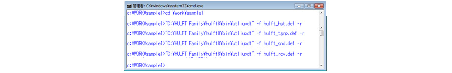C:\work\SAMPLE1\(”hulft_hst.def”、”hulft_tgrp.def”、”hulft_snd.def”、”hulft_rcv.def”というファイル名で保存)