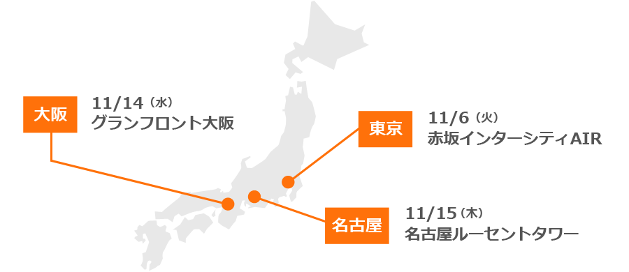 ご希望の開催地(東京、大阪、名古屋)をご選択下さい。