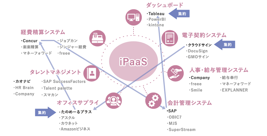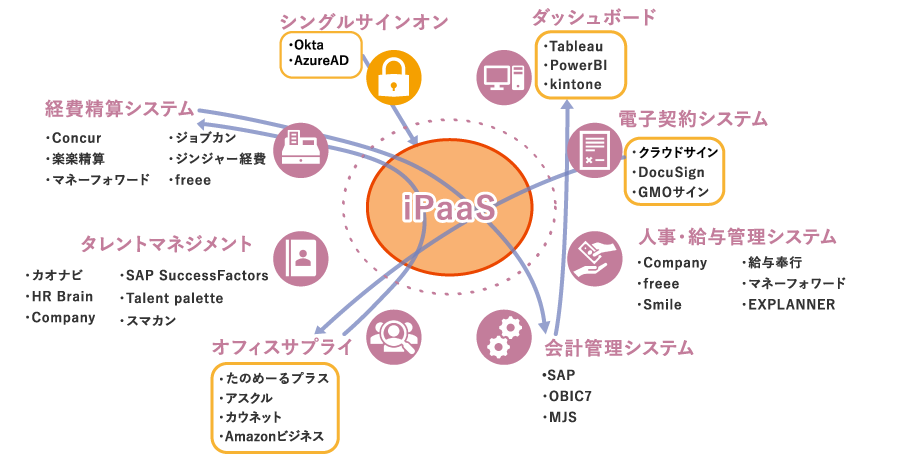 iPaaSはAPIベースの連携だけでなく、従来型のシステム連携 (EAI・ESB・データベース連携、ファイル連携など) を兼ね備えています。