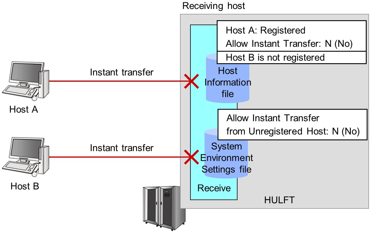 By default, all requests for instant transfer are rejected regardless of whether or not the sending-side host is registered in the Host Information.