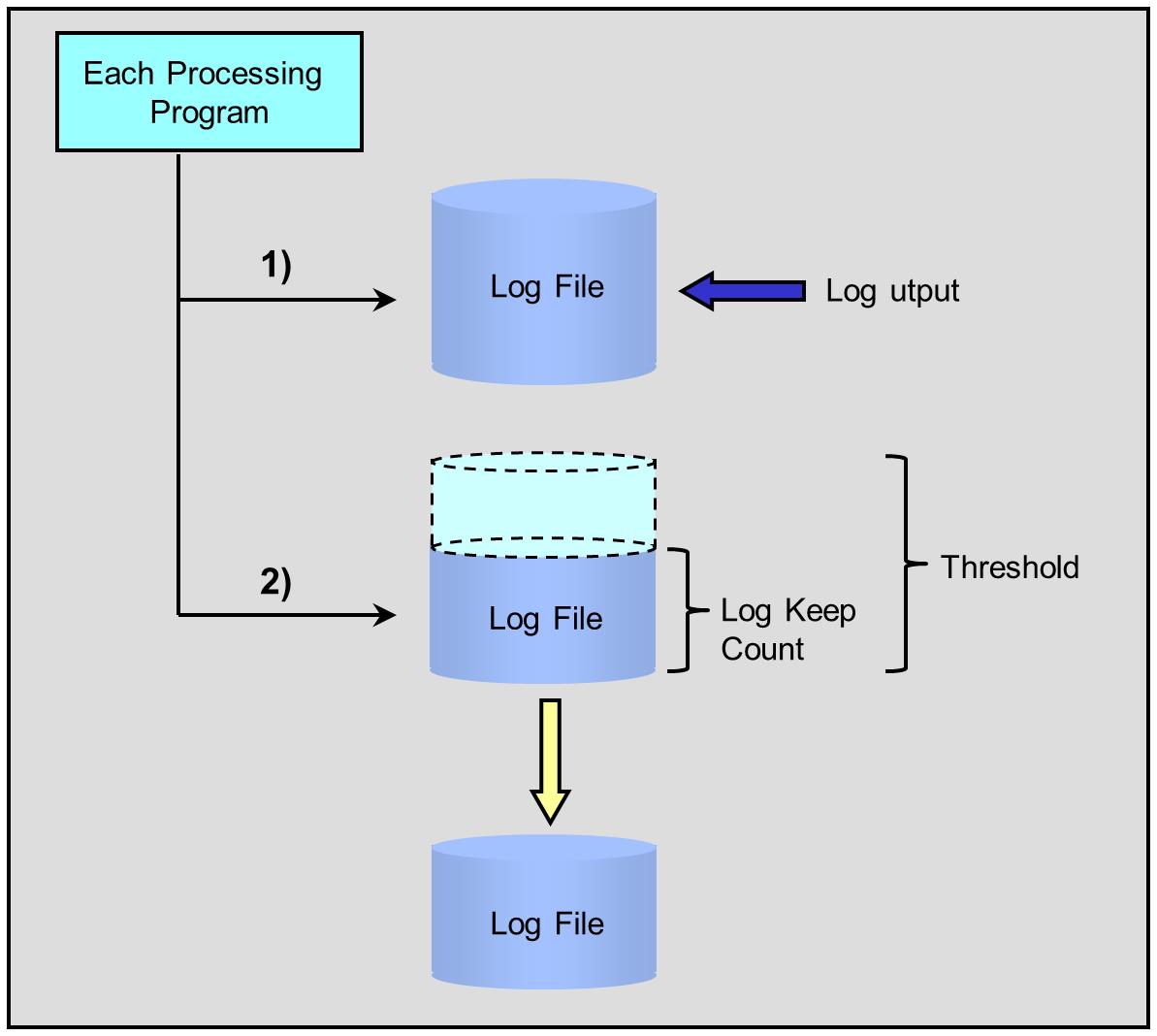 Each processing program checks the log record count after it outputs the log, and if the program finds that the number of log records has exceeded a threshold, it deletes older records so that only the set number of log records remain.