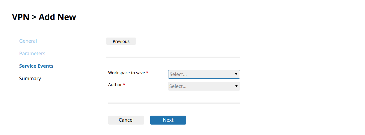 To create a new VPN service, set information for the VPN service by following the wizard-style pages step by step.