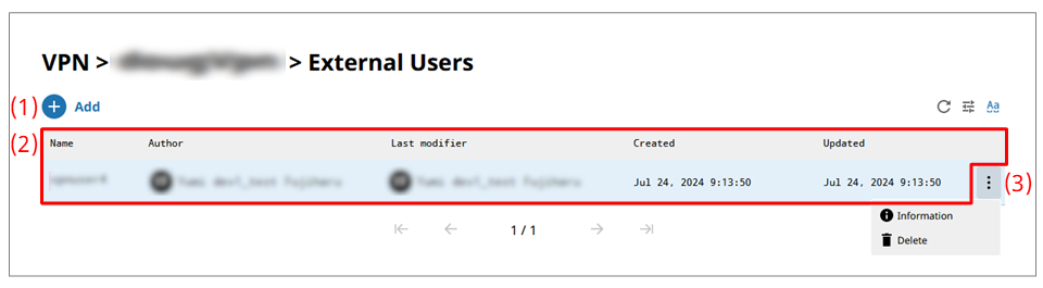 When you select this icon, VPN > VPN service name > External Users > Add New is opened.