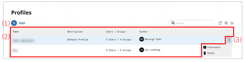 On the Profiles page, you can manage profiles by creating and deleting profiles and by viewing detailed information.