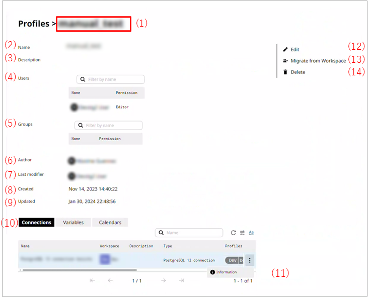 On the Profiles page, select Information from the action menu in the list of settings to open this page.