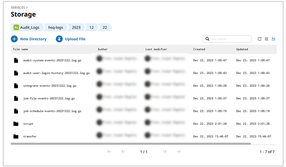 The stored logs can be downloaded. For how to handle files in storage, refer to Storage.