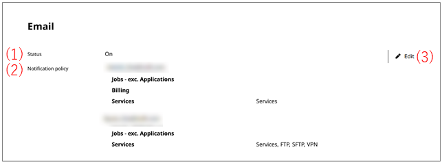 The setting value (On or Off) for notification by email is displayed.