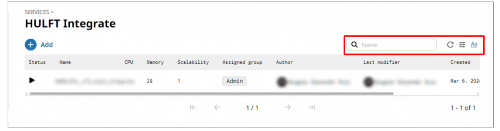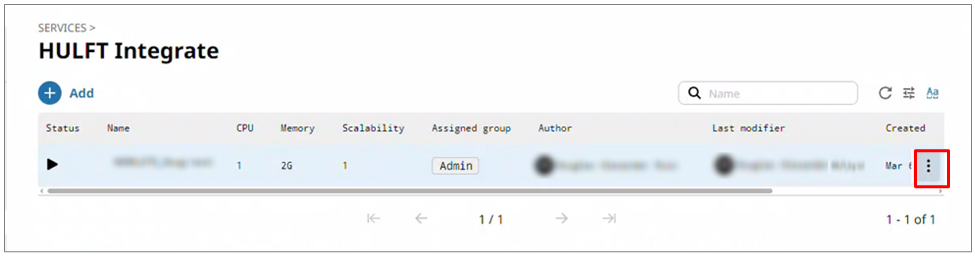 The menu items are different depending on the type of asset. For example, for a HULFT Integrate service, the menu items specific to the service are displayed as shown below.