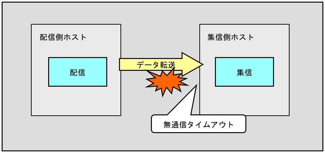 配信処理中または集信処理中は、それぞれ自ホストに設定されている無通信タイムアウトを採用し、ネットワーク異常を検知します。