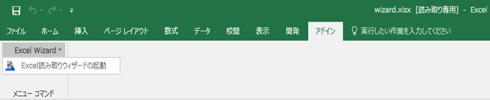 「アドイン」タブの「Excel Wizard」から「Excel読み取りウィザードの起動」を押下します。