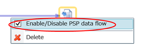 PSPデータフローを手動で設定するには、データフローの右クリックメニューでPSPデータフローを有効化/無効化を選択します。