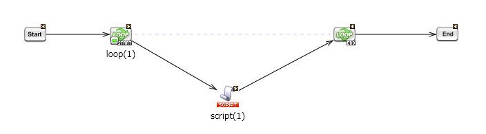 繰り返し(条件指定)処理を使用し、スクリプト呼び出し処理を3回実行するスクリプトを作成します。