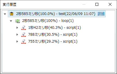 スクリプトの実行後、実行ログビューで処理結果を確認します。