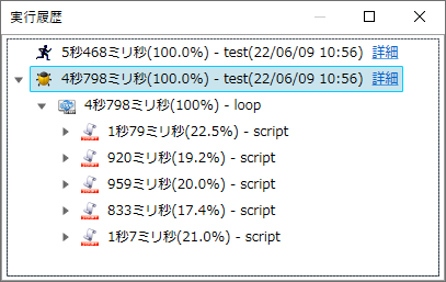 スクリプトの実行後、実行ログビューで処理結果を確認します。