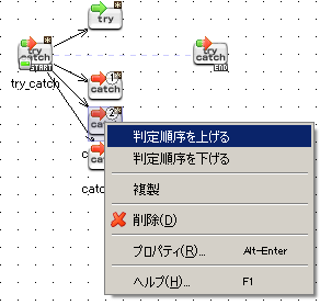 [例外処理]の右クリックメニューから[判定順序を上げる]または[判定順序を下げる]を選択し、複数の例外処理の判定順序を変更します。