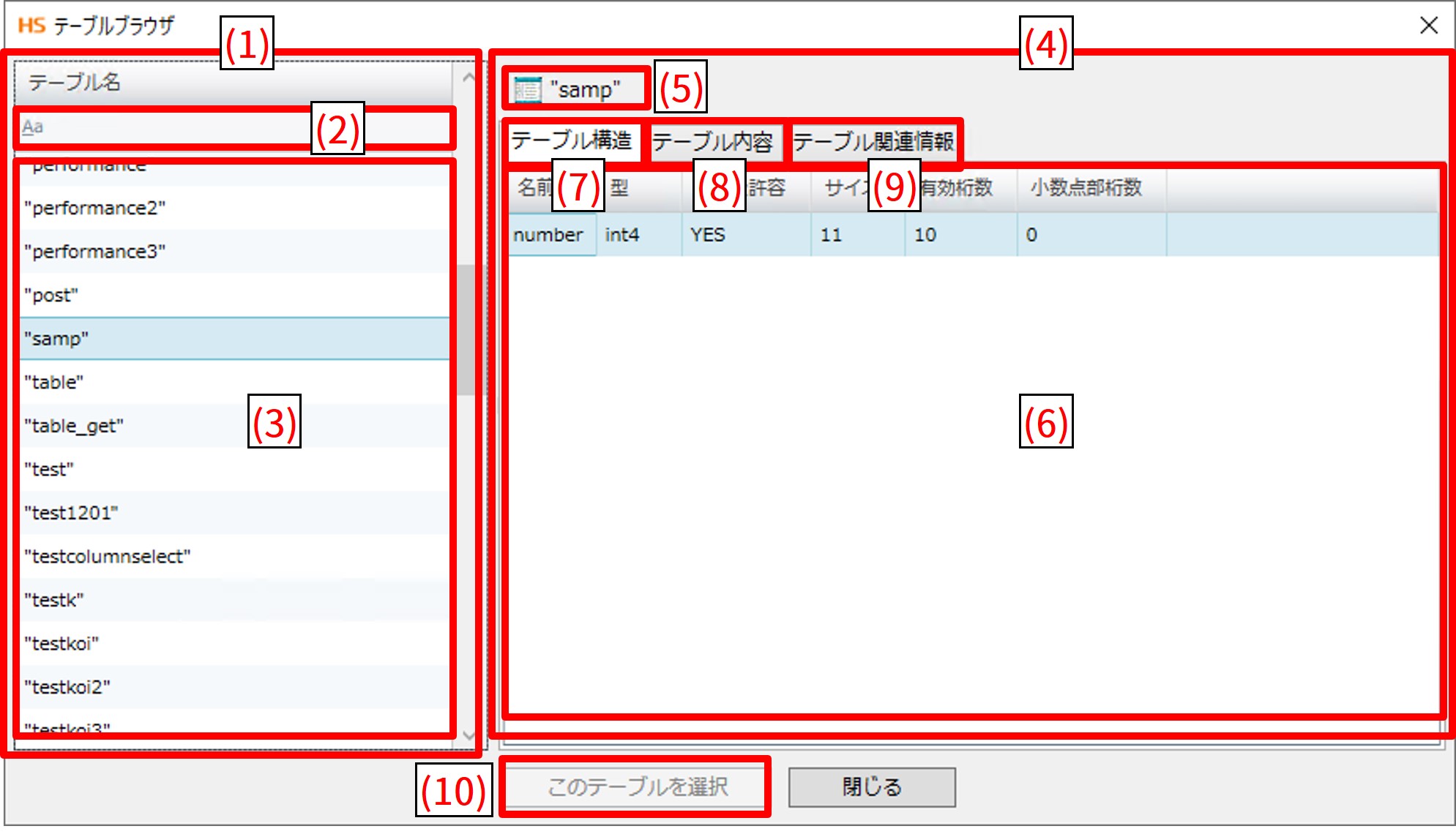 テーブルブラウザとは、テーブルの一覧からテーブルを選択し、構造情報やデータを参照することができる機能です。