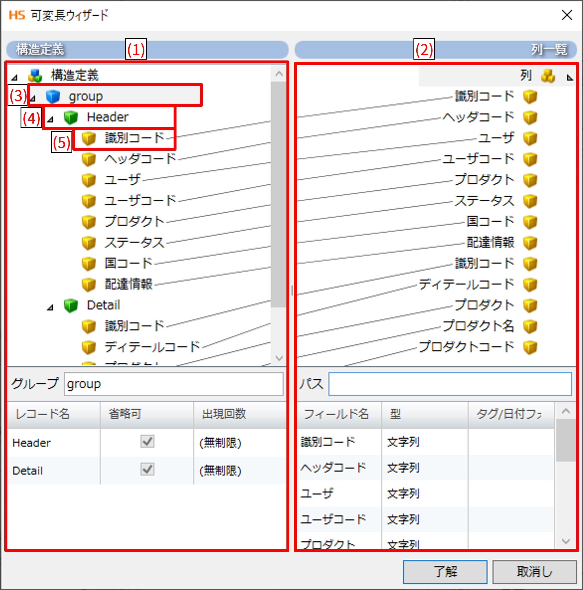 構造定義では、可変長ファイルを読み込む際のデータ形式を定義します。