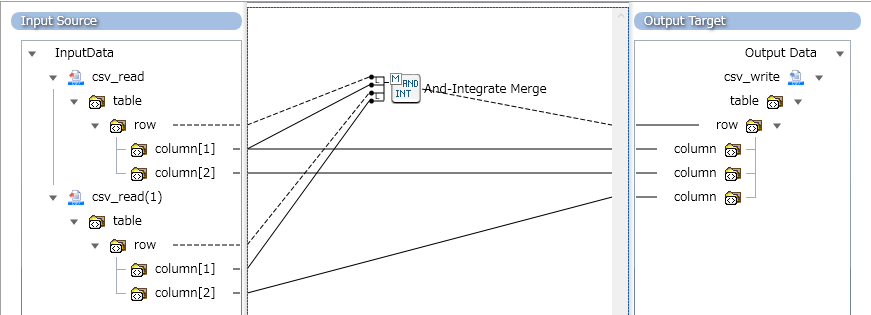 入力データごとのキー値を比較し、キーにマッチしたデータのみを列に追加する形で出力します。
