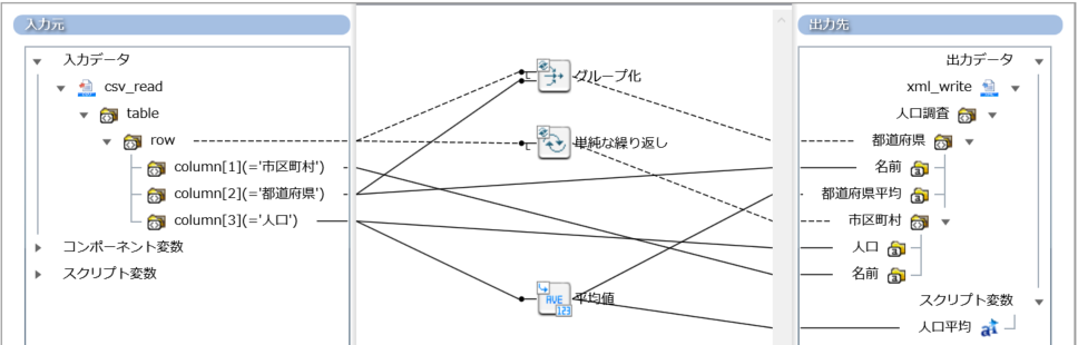 = 補足 =テーブルモデル型のコンポーネントに集計結果を出力する場合には、XML型の出力スキーマを用いていったん集計を行い、その結果データを再度Mapperでテーブルモデル型のコンポーネントに出力してください。