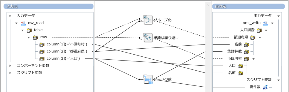 = 補足 =テーブルモデル型のコンポーネントに集計結果を出力する場合には、XML型の出力スキーマを用いていったん集計を行い、その結果データを再度Mapperでテーブルモデル型のコンポーネントに出力してください。