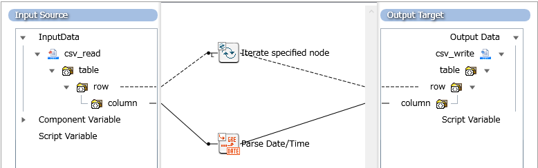 入力データの日付文字列をフォーマット「yyyy/MM/dd」で解析し、日付/時刻型のデータとして出力します。