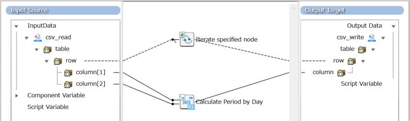 1番目の入力ハンドラの日時から、2番目の入力ハンドラの日時までの期間を日単位で算出します。
