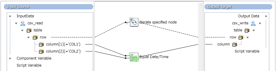 入力ハンドラの値の両方がnullであればtrue、片方がnullであればfalseを出力し、処理を継続します。 |