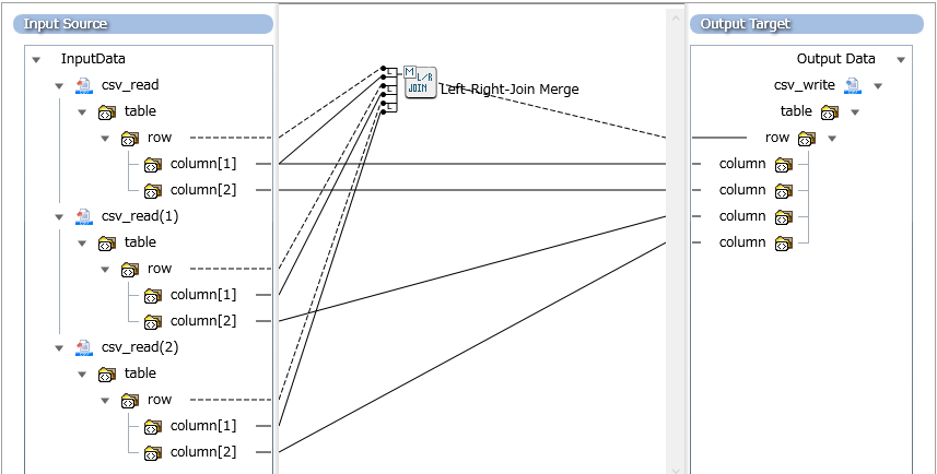 Left-Right-Joinマージでは、1番目に設定された入力データに基づいてマージが行われるため、1番目の入力データと2番目以降の入力データの役割が異なります。
