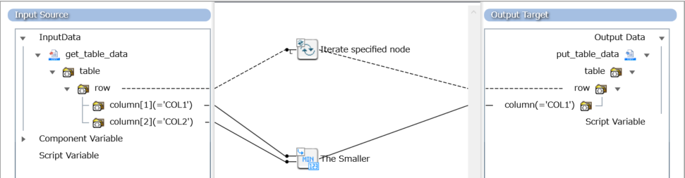入力データの「column[1]」の数値と「column[2]」の数値を比較し、小さいほうの値を出力します。