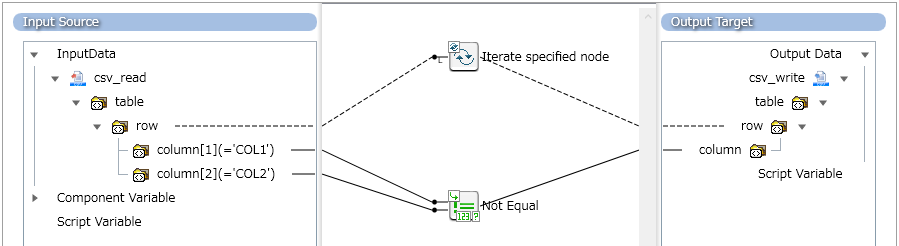 入力ハンドラの値の両方がnullであればfalse、片方がnullであればtrueを出力し、処理を継続します。 |