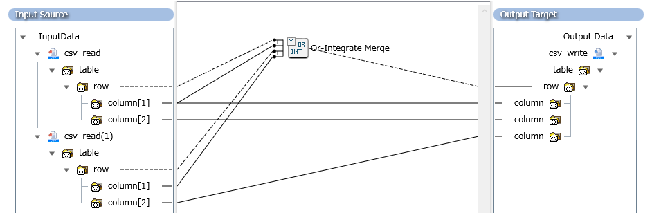 入力データごとのキー値を比較し、キーにマッチしたデータを次の行に追加する形で出力します。